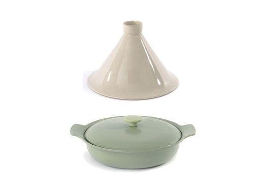 BergHOFF Ron 3Pc Tajine Set, Green Cast Iron Covered Deep Skillet & White Stone Tajine Cover