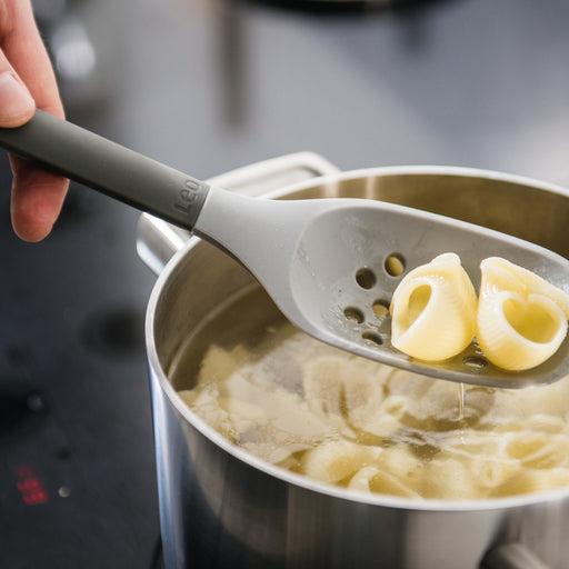 From pasta to peas, the Leo skimmer with silicone body is the perfect tool to skim and strain liquid from your pots and pans without scratching the...