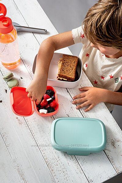 - The lunchbox is designed with ample room to accommodate a variety of food items while featuring a secure and easy-to-use latch closure. The snackbox conveniently and easily fits or nest inside the lunchbox, providing space-efficient storage and ensuring that your child's lunch is kept fresh and organized.