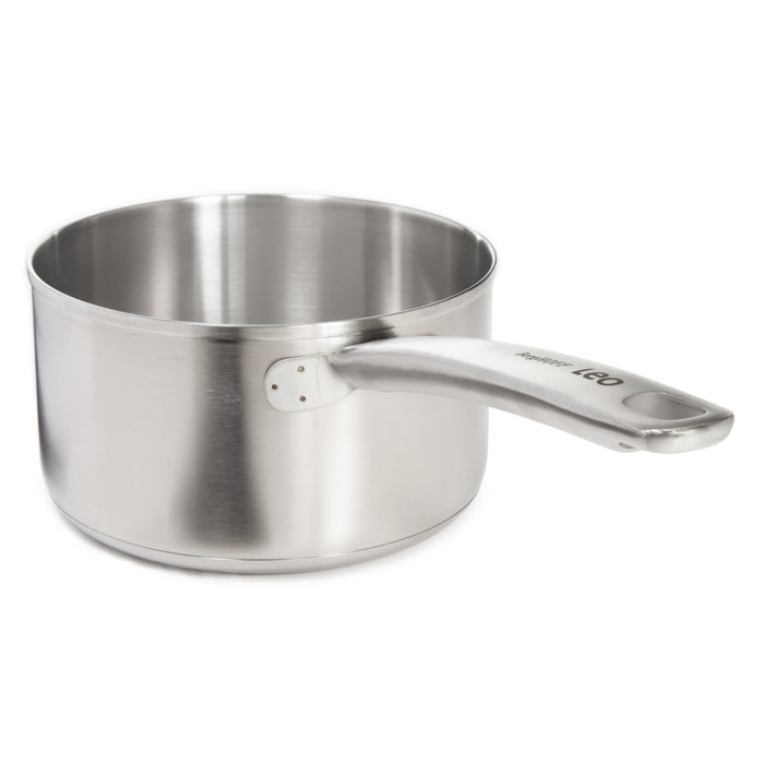 Leo Graphite 6.25" Saucepan 1.7qt. is a versatile and eco-friendly addition to your kitchenware collection. Crafted from high-quality recycled 18/10 stainless steel, this saucepan is not only durable but also environmentally conscious. The convenient handles on both sides make it easy to transport your culinary creations from the kitchen to the table. Its sleek design and compact size make it a perfect fit for any kind of cooktop, including induction. Whether you're serving up a delicious sauce or a soup, this saucepan is designed to impress. Its 1.7qt capacity is perfect for small to medium-sized meals, making it ideal for everyday cooking or entertaining guests. The durable construction ensures even heat distribution, suitable for induction, electric, gas, halogen, and vitro-ceramic. Oven safe without lid up to 480°F, with lid at 350°F. Dishwasher safe.