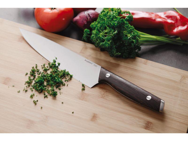 If you've ever made a beef stir fry or a chicken noodle soup, you'll know there's quite some slicing and chopping involved. With this razor-sharp chef's knife you've got a single tool that can handle it all. Its high-quality stainless steel blade effortlessly slides through your veggies, meat, fish or poultry while the crack-resistant wooden handle fits comfortably in your hand for a safe grip.