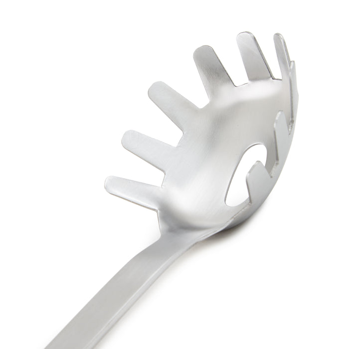 Essentials 3pc Italian tool set. Want to have an authentic Italian dinner? This Essentials 3Pc Stainless Steel Italian Tool Set is a must-have. Slicing pizza, whether thin or thick crust, is a breeze with this stainless steel pizza cutter. The sharp blade effortlessly glides through any topping, and a finger guard ensures safety during use. To start a delicious pasta dish, you need perfectly cooked pasta, and this 18/10 stainless steel pasta spoon is the tool for the job. Its sturdy prongs securely grasp long or short pasta without spills, and the center hole drains excess water back into the pan. You can reach the bottom of deep pots, serving generous portions for the whole family with the long handle. For easy garlic crushing with a simple squeeze, you'll want this robust stainless steel garlic press with a stylish satin finish. This set includes Pizza Cutter 7.75", Pasta Spoon 13.25", and Garlic Press 7.5".