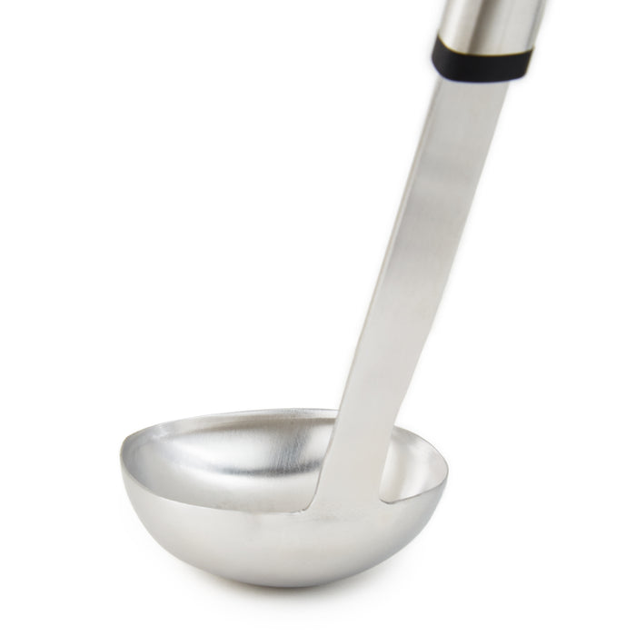 This Essentials 3Pc Stainless Steel Prep Set is a must-have in any kitchen. Struggling to fit your soup ladle into the drawer? Not anymore with this stainless steel ladle featuring an integrated hanging loop for efficient storage. When serving soup, grab the ladle from its rack and easily reach the pot's bottom with the ergonomic, glove-like handle. No more lumps in your mash with this sturdy potato masher. Its stainless steel mashing plate works effortlessly on potatoes, fruits, or veggies, while the long handle provides a secure grip without straining your wrists. For tender, juicy meat or thin cutlets, use this stainless steel meat hammer. It has a flat side for pounding and a spiked side for tenderizing. The well-balanced weight distribution ensures comfort, and there's an integrated loop for space-saving storage. This set includes Soup Ladle 13.75", Potato Masher 10.75", and Dual Meat Hammer 9.75".