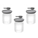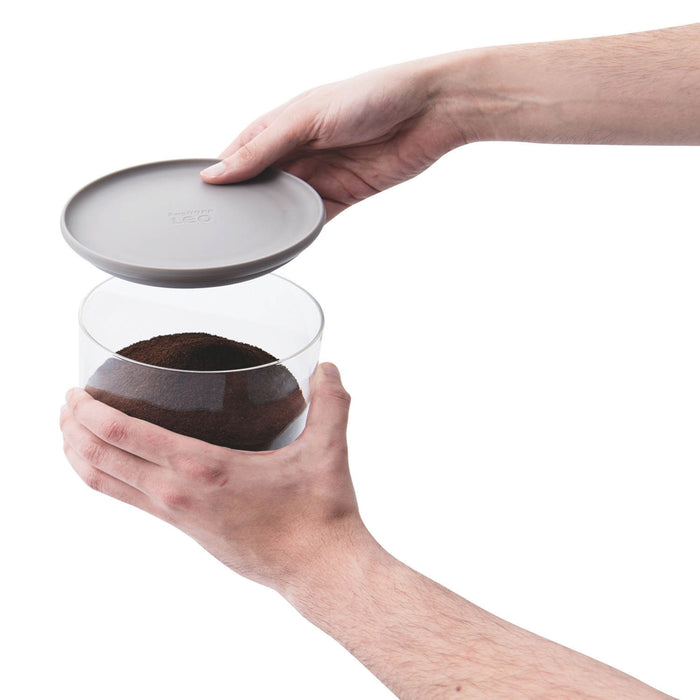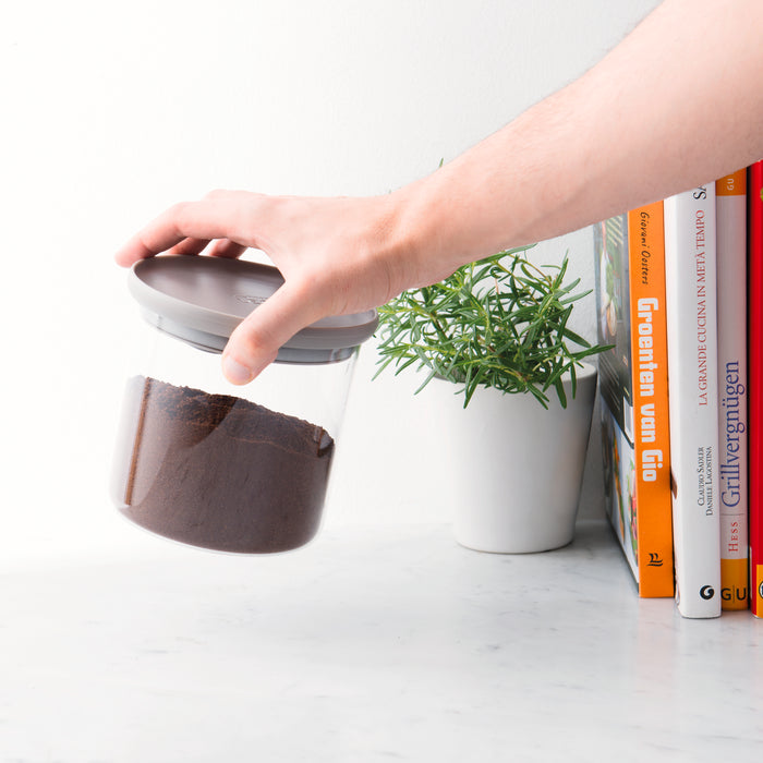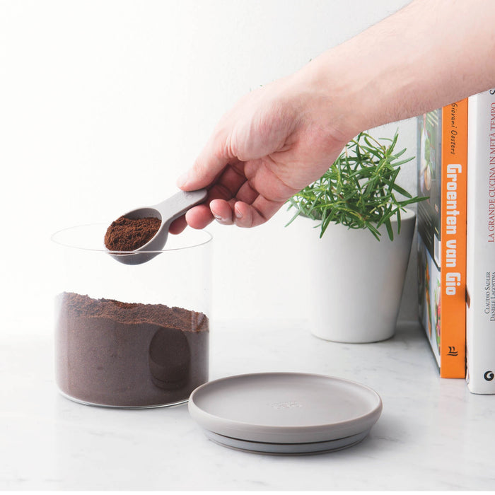 Ground coffee, vanilla sugar, fresh herbs… keep it all fresh and tasty with a little help from these stackable glass food containers. Thanks to their large opening you can easily fill the canisters and take out just the right amount with the help of the matching measuring spoon. These airtight containers are stackable for easy storage, scratch resistant, and dishwasher safe! Set includes: Three measuring spoons, Three containers with matching lids.