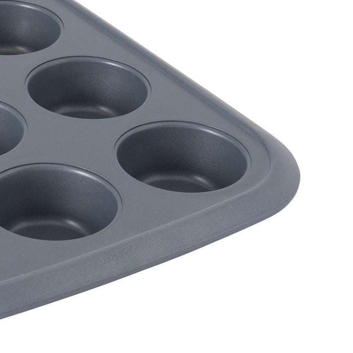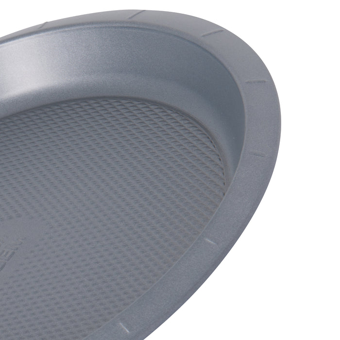 GEM 3pc Bakeware Set provides essential tools for versatile baking. Made from durable carbon steel, each piece features a non-stick Ferno-Green coating that is 100% Non-Toxic and does not contain PFAS, PTFE, PFOA, GEN-X, BPA, APEO, NMP or PFOS for healthier, less fat, impeccable food release. Each designed with integrated grid lines and a diamond-textured bottom for even heat distribution and easy release. Create a delicious chocolate cake, banana muffins, or apple pie or even conjure up all kinds of tasty treats with this bakeware set. Oven safe up to 450°F, this bakeware set is perfect for a variety of recipes. For best results and to preserve the non-stick surface, hand wash only. Package includes: 10.75" cake pan, 12.5" pie pan, and 12-cup muffin pan