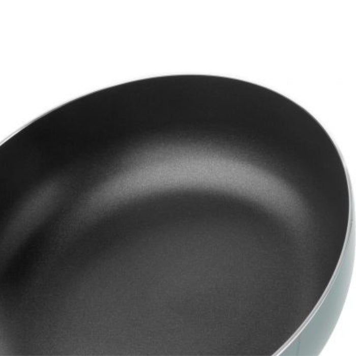 Time to enjoy the oriental cuisine and create a crispy wok meal on the dinner table. Just like the frying pans in this range, this Leo Slate 11" wok pan 4qt. is provided with a high-quality FernoGreen, PFOA-Free, non-toxic, non-stick coating to cook with little to no oil for healthier cooking and ensures easy food release. The lightweight Aluminum wok pan heats up quickly and provides an even heat distribution for energy efficiency. The glossy phenolic resin stay-cool handle provides you with the convenience of moving the pan easily and safely. This 11-inch wok pan can be used on any kind of stovetop, including induction. The matching colors Sage and Slate in this Leo collection allow you to combine the different sizes of pans in both colors.