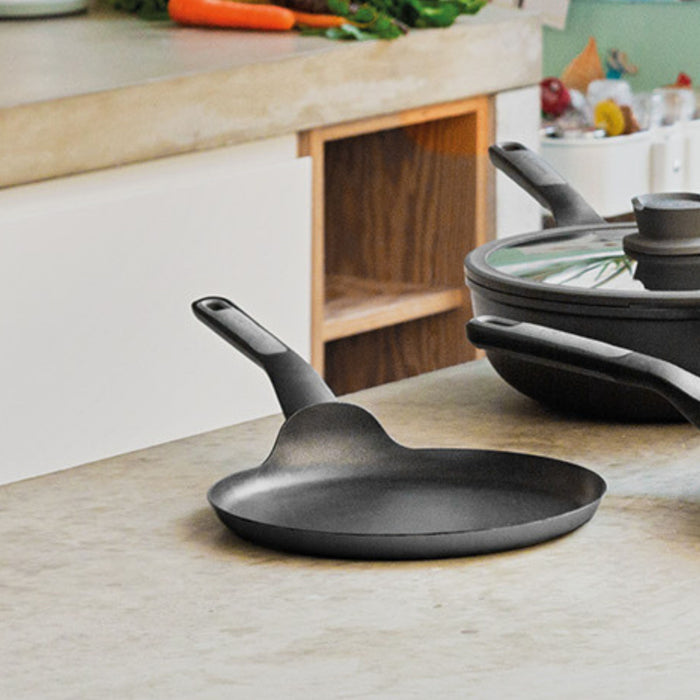 American blueberry pancakes or French crêpes; the choice is yours! Whatever your tastes, this cast aluminium pancake pan is just what you need to prepare a hearty breakfast or a sweet afternoon treat. Thanks to the low side and non-stick coating you can easily transfer the food from the pan to your plate.