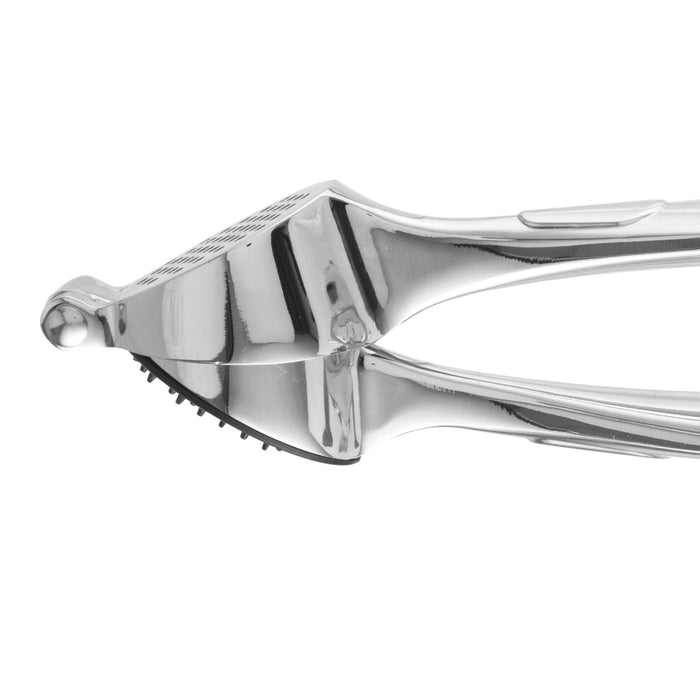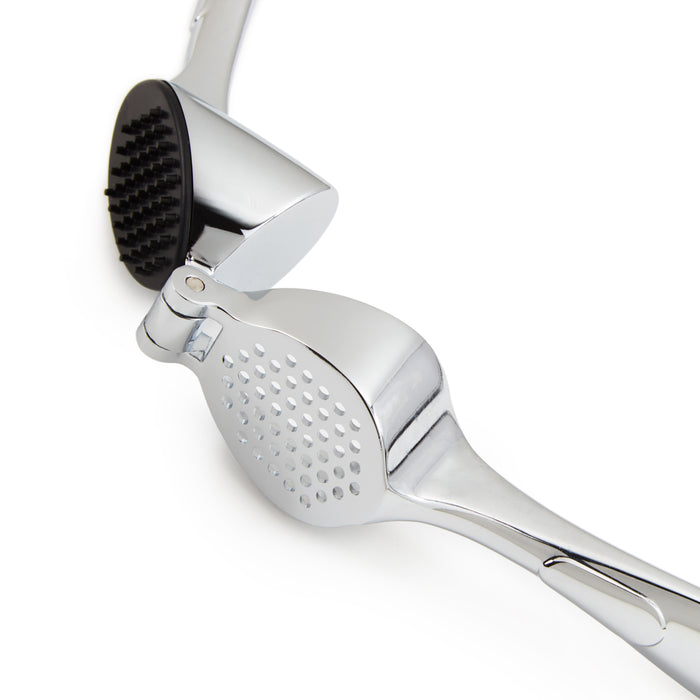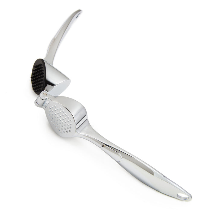 - Cast Zinc Alloy Garlic Press with mirror finish, ergonomically designed handle.