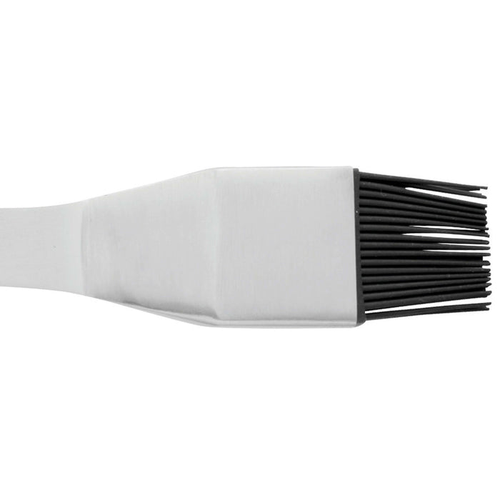 Essentials Stainless steel brush is a versatile and durable tool that is perfect for a variety of cleaning tasks. The long wooden handle provides a comfortable grip, allowing you to easily scrub away dirt and grime without straining your hand or wrist. The silicone bristles are gentle yet effective, making this brush suitable for use on a wide range of surfaces, from delicate glassware to tough outdoor grills. Want to apply a delicious sauce or a flavored oil to the ribs, roast, or other delights that you've got on the grill? Just grab this convenient basting brush and let the flexible silicone bristles do their thing to spread the sauce or oil evenly. Thanks to the long stainless steel handle that's partially covered in crack-resistant wood you don't have to worry about hand burns from hot oil. On top of that, the handle is equipped with a little hook so you can easily hang the brush on a peg when you're not using it.