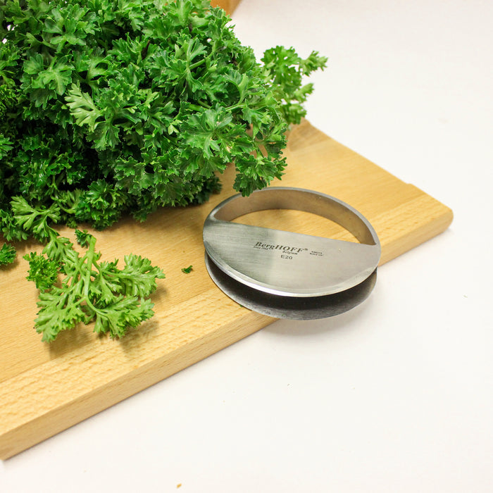 BergHOFF's 20pc Smart Knife Block Set. The cutlery set is lightweight, hand-sharpened and perfectly balanced for optimal cutting and ease of use. Each knife in this set is made of high-quality stainless steel, ensuring durability and long-lasting sharpness. The ergonomic handles provide a comfortable grip, making it easy to use the knives for extended periods without causing hand fatigue. The detachable steak knife block allows you to easily transport your steak knives for outdoor dining or picnics, while the cutting board provides a stable surface for all your cutting and chopping needs. With this comprehensive set, you can tackle any recipe with confidence and precision, making it a valuable addition to your kitchen arsenal. Set includes 8" chef knife, 8" bread knife, 7" Santoku, 5" Santoku 5" utility knife, 3.25" paring knife, 10" poultry shears, 8x 4.5" steak knives, 8" sharpening steel, herb cutter and mincer, swivel rotating base, detachable steak knife block and cutting board.