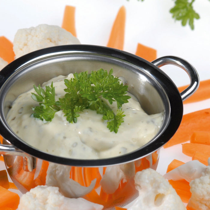 BergHOFF's 2x Condiment serve set is a must-have for any kitchen or dining table. Each canister provides ample space, making them perfect for storing a variety of dipping condiments such as ketchup, ranch, mustard or even BBQ sauce. The high-quality 18/10 stainless steel construction ensures durability and longevity, while also giving the canisters a sleek and modern look that will complement any kitchen decor. The lids are easy to remove and replace, making it convenient to access your condiments whenever you need them. Whether you're hosting a dinner party or simply enjoying a meal at home, these canisters are the perfect way to add a touch of elegance and organization to your dining experience. Set includes: 2x condiment canisters 2.5", 4 oz., and 2x matching lids
