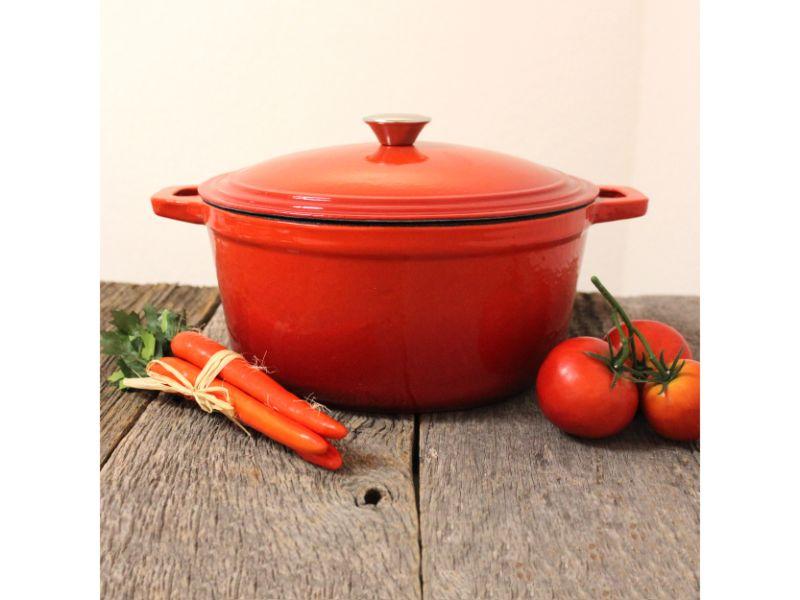 - Package includes: 8" Round Dutch Oven 3qt, 10" Fry Pan, 11.5" Oval Dutch Oven 5qt, 2x Lids. Upgrade your kitchen essentials with our eco-friendly dutch oven set, made of durable and high quality cast iron featuring a glossy base with enamel coating and wide, ergonomic handles for a safe and secure grip. Includes matching vapor seal lids.
