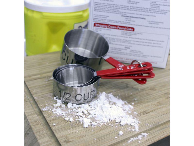 Set Includes: 4pc measuring cup set - 1/4 cup (60ml), 1/3 cup(80ml), 1/2 cup(125ml), 1 cup(250ml), 6pc Bamboo Utensil set - (2) Spatulas and (4) oversized spoons with multicolored handles. The measuring cup set is a must have for any kitchen, use it for baking or adding spices to any meal. The bamboo utensil set is another classic set with natural beauty and durability. Bamboo is seeing a resurgence in popularity as it is considered a “green product." Cleaning bamboo is easy, just wash with soap and water.