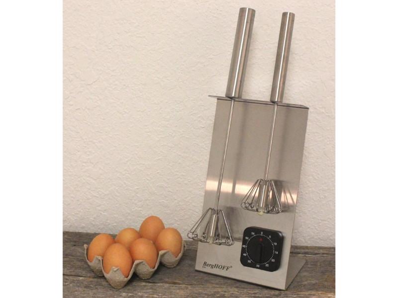 - Package includes: 2 whisks 16.5", and a stand with attached Timer, Silver