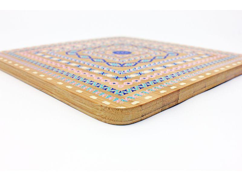 - 4x Bamboo trivets with attractive blue, intricate patterns.