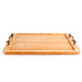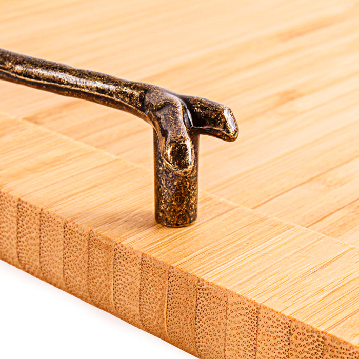 - Bamboo serving tray with wrought iron, ergonomic handles