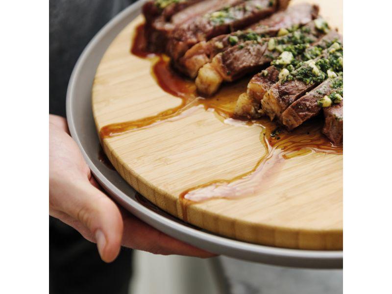 Is it a carving board, a serving board or two nested plates? All of the above! The bamboo cutting board nests neatly inside the plate which collects all the juices when you’re carving your meat. Or you can also use them separately as two stylish plates to upgrade your outdoor dining: the bamboo board to serve meat and the plate for all kinds of side dishes and extras. And why not use it to present a delicious cheese platter? Lunch, dinner or party, this board is the perfect go-to every time! Slice your turkey, ham or Sunday roast as thin as you want with the Leo carving set. The carving fork holds your meat securely in place with its two sharp tines while you use the thin sharp blade of the carving knife to carve the meat precisely. Both the carving fork and carving knife have a soft-touch handle that's comfortable to hold in your hand and well-balanced. Gather everyone around the dinner table and impress them with your carving skills! Set includes 7.5" carving knife and 6.75" carving fork, 14.25" bamboo cutting board w/plate