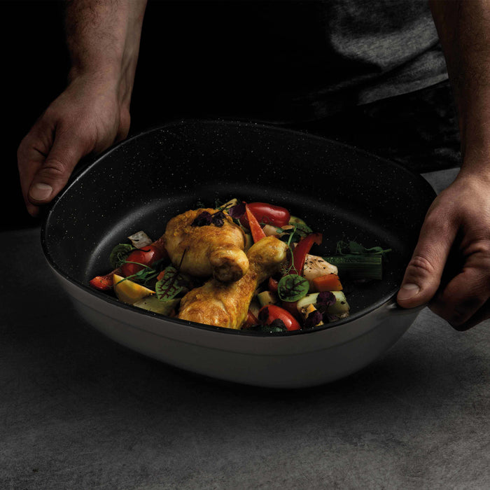 - Non-porous surface ensuring long-lasting durability and exceptional performance even after extended use. Convenient handles make it easy to transport from the oven to the table.