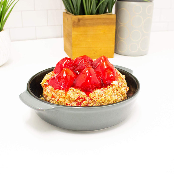- Durable stoneware with enameled interior for easy food release and hassle-free cleanup. Oven safe up to 450°F. Microwave safe.