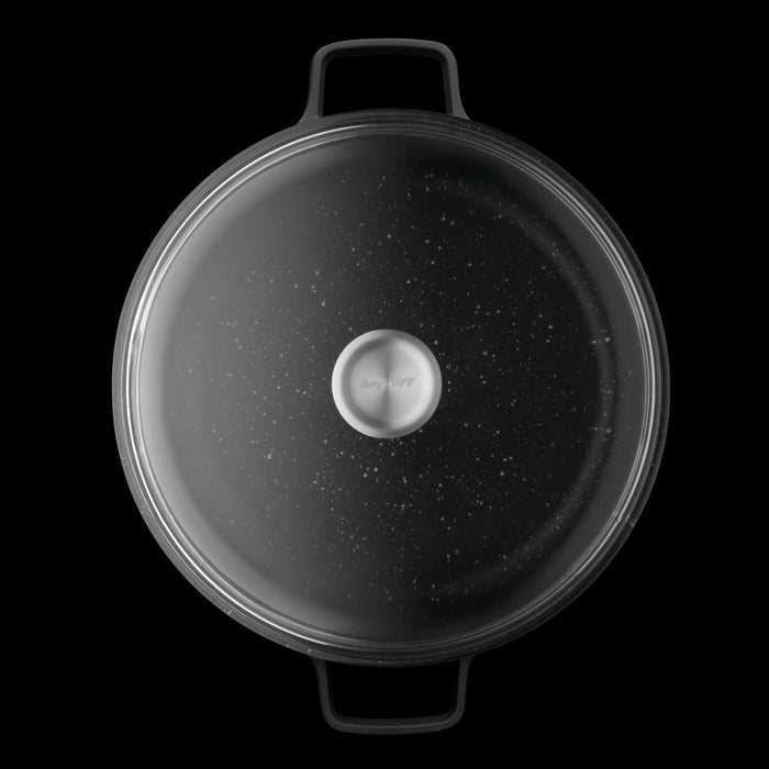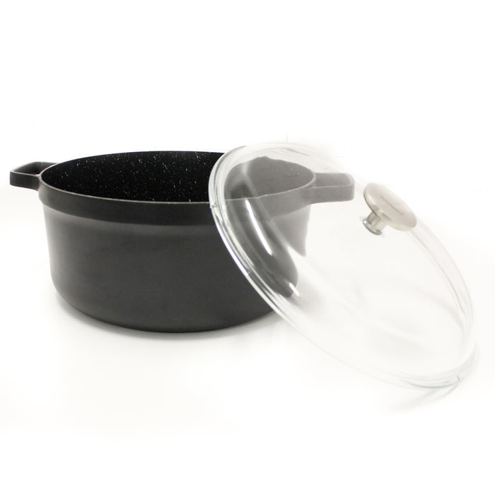 Whether you want to make a chicken stock or a savory soup, this stockpot will help you bring your recipe to perfection. The glass lid with 18/10 Stainless steel knob allows you to cook energy-efficiently while the non-stick coating makes it a dream to clean. Multifunctional, the stockpot is just the right size for cooking large batches of soup, potatoes, pasta, etc. but it still fits in the oven if you decide to make a casserole. Just think of the great smells that will linger in your kitchen! The glass lid allows you to keep a close eye on your cooking while avoiding energy loss. The aluminum reacts quickly to temperature changes, from the heat you need to sauté your meat or poultry to the gentle simmer for your pan sauce. Use it on any hob, put it in the oven or take it directly to the table with the easily detachable handle. It’s a great set to prepare your family’s favorites time and again.