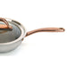 - Package includes: 9.5" Deep Skillet 3.1qt with Glass Lid. Crafted from high-quality 18/10 Stainless Steel with a sleek mirror finish and features ergonomically designed rose gold handles for a firm, secure grip. Save valuable kitchen space utilizing the hanging loop and store your cookware within reach.