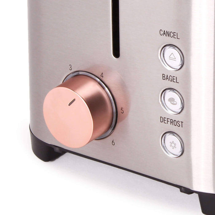 - Toaster includes three additional functions: Defrost, bagel, and cancel.