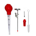 - Silicone Bulb, Transparent Tube, Silicone Brush, Cleaning Brush, 18/8 Stainless Steel Needle and Stainless Steel Dial Thermometer with adjustable clip.