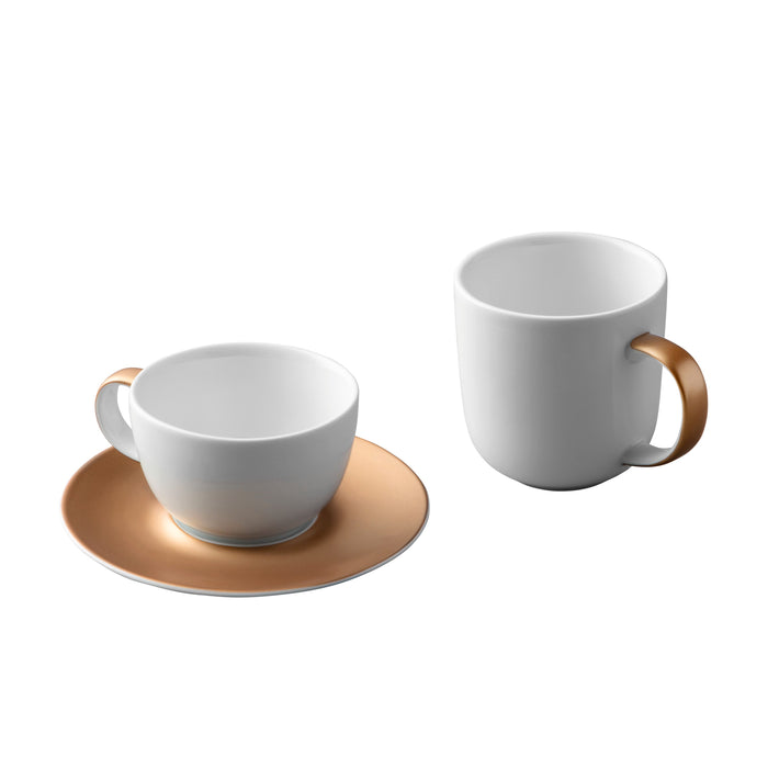 Classy white with a touch of gold, thanks to the modern elegance that this plate set brings to the table you’ll easily add a little sparkle to your next dinner party. The pieces are made of high-quality porcelain with a glossy finish to get the extra touch of glamour and are dishwasher safe. So after you’ve enjoyed a festive meal you can simply pop the plates in the dishwasher and rejoin the party. Set includes: 4x Mug, 4x Cup, 4x Saucer, 4x Deep Plate, 4x Large Plate, 4x Small Plate, 4x Presentation Plate with Lid.