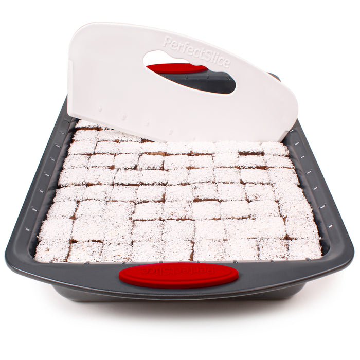 • With its unique grid line feature and slicer, it takes the guesswork out of slicing equal-sized portions, making it easier than ever to maintain portion control and manage dietary requirements. The grid lines on the pan provide clear guidelines, allowing you to achieve perfect portion sizes every time.