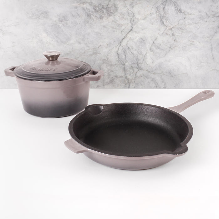 BergHOFF Neo 3pc Cast Iron Cookware Set, Fry Pan & Round Dutch Oven, Oyster