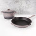 Neo 3pc Cookware Set is built with an enameled body that heats up evenly and stays hot longer. The ergonomic handles provide a secure grip. This dutch oven can go effortlessly from browning on the stove top to roasting in the oven. Braise short ribs, make hearty stew, three bean chili, curry chicken, and so much more. The beautiful fry pan with its sturdy handle is another multipurpose tool in your kitchen arsenal that can make succulent lamb chops, crispy bacon, and even a delicious cake. Its integrated pour spout and helper handle allows you to easily drain any unwanted fat from the pan and effortlessly maneuver your pan from stovetop to oven or serving dish. Suitable for all cooktops including gas, electric, ceramic, glass, and induction. Oven safe up to 535°F. You can sear your food on the stovetop, and finish in the oven. Set includes: 8" Round Dutch Oven 3qt with Lid, 10" Fry Pan. Available in 9 colors: Blue, Green, Meringue, Orange, Oyster, Pink, Purple, Red, White