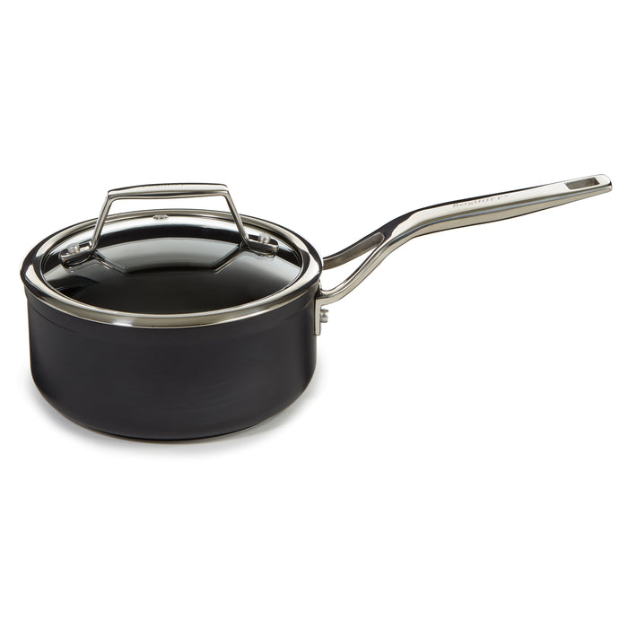 BergHOFF Essentials Nonstick Hard Anodized 6.25" Saucepan 1.3qt. With Glass Lid, Black