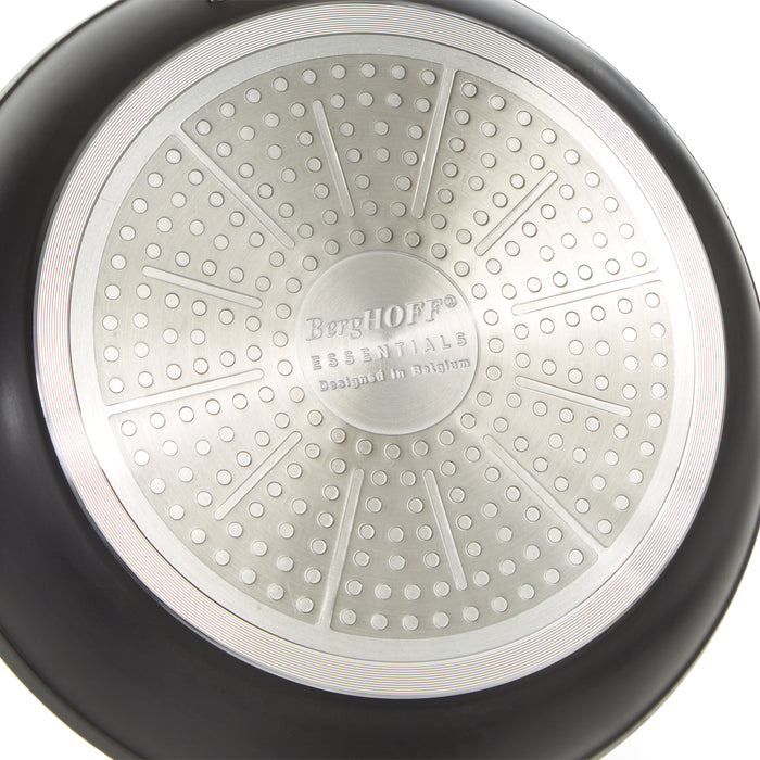 BergHOFF's Essentials hard anodized cookware for exceptional functionality and bold beauty. Cook with ease using this Essentials 10” covered stockpot 5.3qt. Constructed from hard-anodized aluminum body with BergHOFF's FernoGreen nonstick coating, 100% Non-Toxic and does not contain PFOA, GEN-X, BPA, APEO, NMP or PFOS for healthier no-oil or low oil cooking and make it easy to clean. Designed with full disk bottom to avoid scratches on your glass top cooktop and to ensure rapid, even heat distribution for energy-efficient cooking. Featuring polished stainless steel and ergonomic handles. The glass lid with stainless steel rim and venting hole ensures you of keeping an eye on the food while cooking. Ideal for making stocks, broths, soups, stews, and other liquid-based recipes. It can be used on any kind of stovetop including induction, oven safe up to 450°F. BergHOFF's cookware is built to withstand heavy use with a fast, simple cleanup.