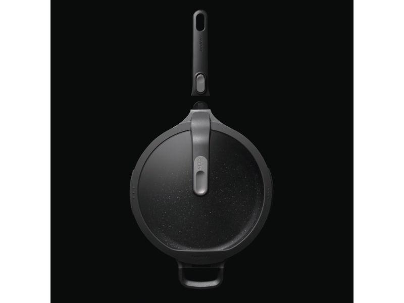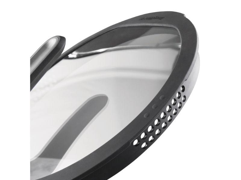 - BergHOFF's Ferno-Green Non-Toxic Nonstick coating doesn’t contain PFOA, PFOS, GEN-X, BPA, APEO or NMP for healthier no-oil or low oil cooking. Easily detachable handle that allows for use in the oven and space-efficient storage. Stay-cool handle for a safe and comfortable grip. Aluminum body that distributes heat fast and evenly. Glass lid allows you to keep an eye on your food while it’s cooking, no need to lift the lid. Silicone rim & 2 drip-less pouring areas for precise straining. Lid can be placed vertically on the body of the pan.