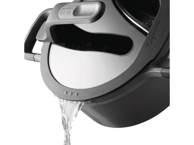 - BergHOFF's Ferno-Green Non-Toxic Nonstick coating doesn’t contain PFOA, PFOS, GEN-X, BPA, APEO or NMP for healthier no-oil or low oil cooking. Stay-cool handle for a safe and comfortable grip. Aluminum body that distributes heat fast and evenly. Glass lid allows you to keep an eye on your food while it’s cooking, no need to lift the lid. Silicone rim & 2 drip-less pouring areas for precise straining. Lid can be placed vertically on the body of the pan.