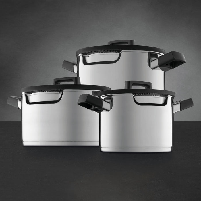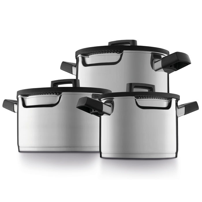 BergHOFF GEM 6Pc Downdraft 18/10 Stainless Steel Cookware Set, Black Handles