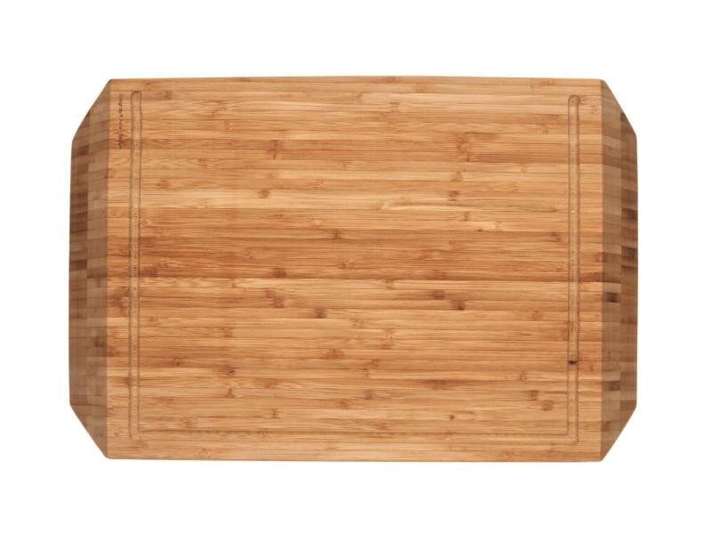 - Trenches along one side make avoiding spills easy. Bamboo is natural, anti-bacterial, and absorbs very little moisture, making it more hygienic than some other types of wood.