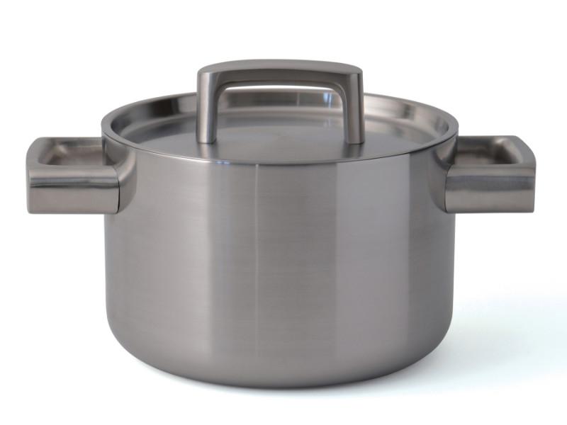 - Made of 18/10 Stainless Steel with Satin finish, Sturdy two-handle, Matching Lid. Quick to heat, even heating Stainless Steel construction. 5-layer capsule base, cold grip system.