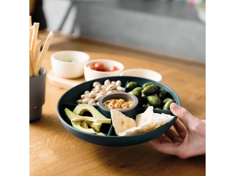 A refreshing drink, some good conversation with family or friends and a tasty snack, the perfect ingredients for a wonderful evening. The Leo apero set is great for serving appetizers, cookies, chips or other yummy treats. Beside a serving dish the set comes with a small cup for sauces and a bigger cup for larger appetizers.