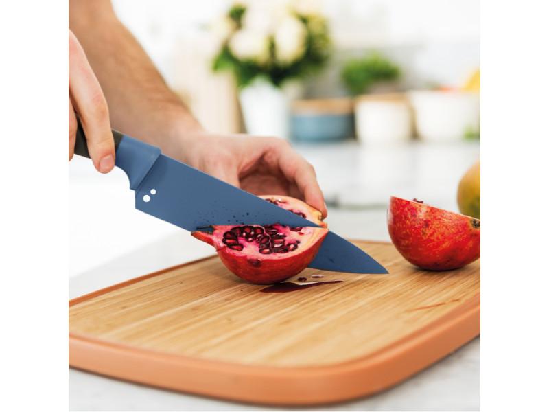 - Non-stick Chef's Knife 5.5" made of Stainless steel and ergonomically designed soft-touch PP handle, PP Fitted protective sleeve. Built-in herb stripper.