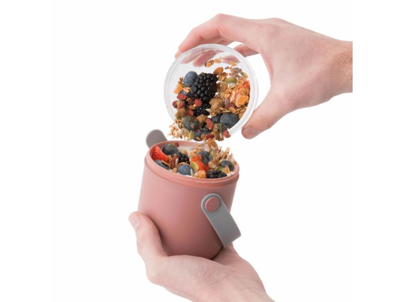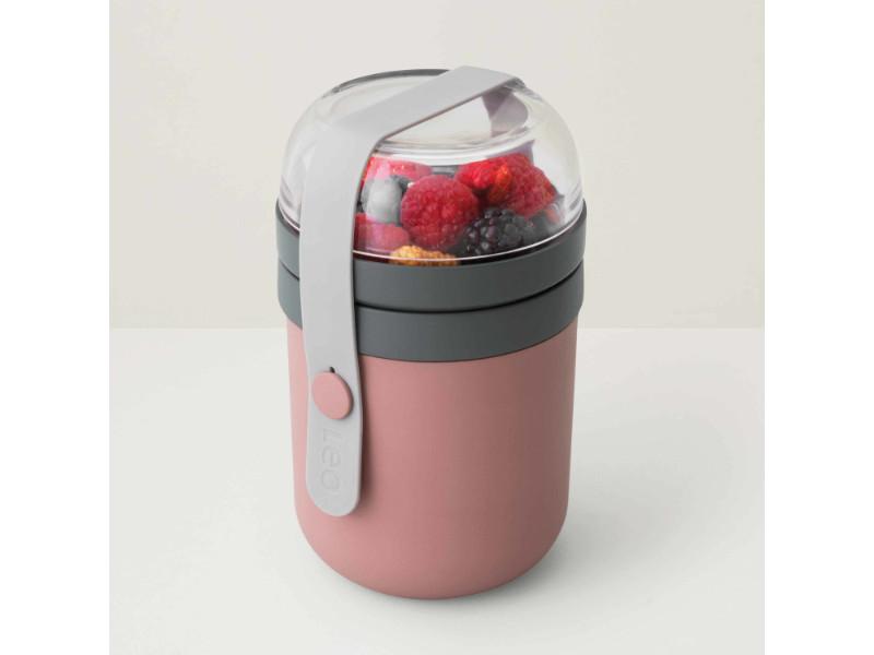 - Dual lunch pot 3.75" x 6", 0.5 qt. & 0.19 qt., Gray, Pink. Made from Polypropylene (PP), Silicone ring. Leak proof design.