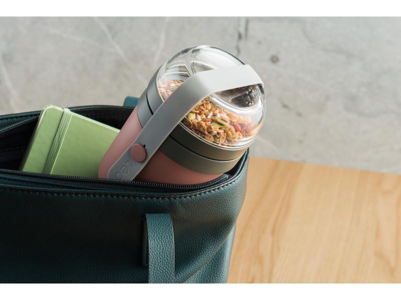 No more soggy bread croutons in your soup or soaked oats in your yogurt. The two separate containers of this dual lunch pot keep your ingredients fresh and crispy until you're ready to eat. Just separate the leak-proof containers, mix their contents and enjoy your lunch or snack. The versatile item is not only dishwasher safe, but it is freezeproof and the body is microwave safe! This lunch pot is not only practical but also stylish. It comes in an elegant gray and pink color combination, adding a touch of sophistication to your lunchtime routine. Whether you're a student, a professional, or someone who enjoys outdoor activities, this lunch pot is a must-have accessory for those who prefer to bring their own meals. Its compact size, leak-proof design, and attractive appearance make it the perfect companion for on-the-go individuals who value convenience and style.