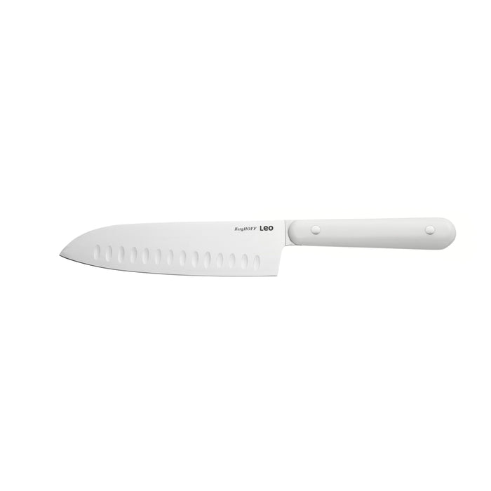 • The Japanese-style santoku knife has a shorter and wider blade for chopping or even crushing and scooping ingredients like garlic. The carving knife's blade is specially designed to be shorter and wider for enhanced control and precision. The bread knife's serrated blade effortlessly cuts through tough-skinned fruits, vegetables and bread, without squishing or crushing the delicate insides.