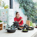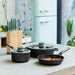• ENERGY-EFFICIENT COOKING: Use residual heating of the cookware by removing the cookware from the stovetop and let your dish rest for a few more minutes until the cooking time is done properly. Not only do you save energy but also reduce up to 80% of CO2 emissions. Cook with less water or even steam your dishes: saving vitamins and cooking time, resulting in less energy consumption.