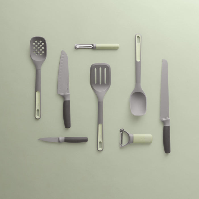 Need to skim floating fat from your homemade stock or want to remove hot foods from boiling water? This Leo Balance Skimmer 12.75" is heat-resistant, lightweight recycled nylon with silicone won’t scratch your delicate cookware. The soft-touch rubber handle ensures a comfortable grip when you’re scooping up your ingredients. Its long handle ensures your hand stays well clear of the heat source while the perforation pattern in the skimmer provides effortless skimming or draining. Don’t have a lot of drawer space in your kitchen? Just use the hole in the handle for convenient hanging storage.
