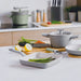 • Recycled Aluminum 11" Square Grill Pan features a CeraGreen non-stick ceramic coating and comes with a stay-cool soft touch handle, providing a secure and comfortable grip and it's hanging loop allows for easy storage, saving valuable kitchen space.