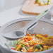 - The glass lid features an integrated straining function with a special knob on top for a spoon rest to keep your kitchen clean while cooking. Effortlessly drain without needing a strainer. The silicone rim around the lid is to prevent rattling, also drip-free pouring.