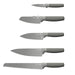 • The serrated blades on the bread knife easily slice through foods with thick outer surfaces without creating a lot of crumbs, crushing the pastry, or causing other imperfections. Its sharp, serrated edge ensures clean and precise cuts every time. The versatile vegetable knife is ideal for all vegetable preparation needs as its curved blade allows for easy rocking motion. Add some tang utilizing the vegetable knife's integrated zester and strip herbs like thyme and rosemary with ease through the loop.