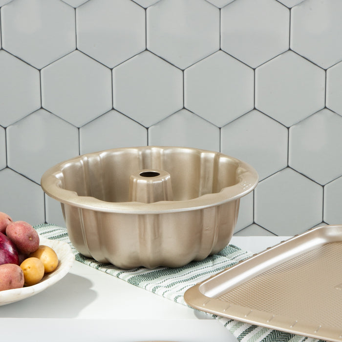 • Chocolate cake, lemon cake or marble cake, whichever flavor you fancy, with this fluted cake pan, you’ll bake the most delicious, fluted cakes in a jiffy! Intricate fluted design adds a touch of elegance to your baked creations. The hole in the middle allows for even baking, resulting in a moist and flavorful finished product.