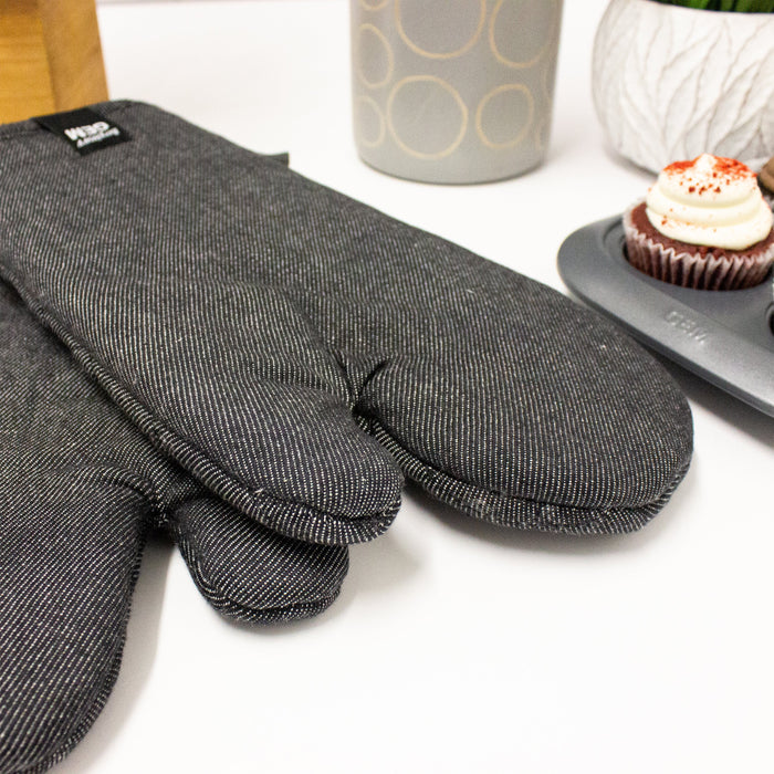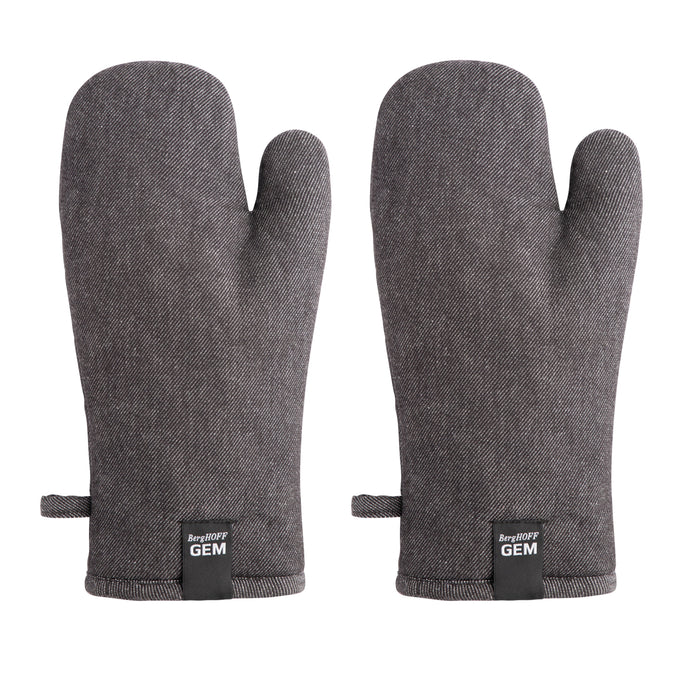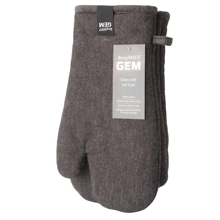 BergHOFF GEM 100% Cotton 2Pc Oven Mitt Set, Black Denim Look